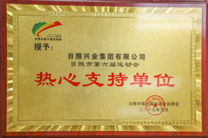 2019年9月,日照市第六屆運(yùn)動(dòng)會(huì)組委會(huì)授予興業(yè)集團(tuán)“熱心支持單位”