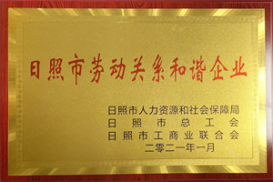 2021年1月,興業(yè)集團(tuán)榮獲“日照市勞動(dòng)關(guān)系和諧企業(yè)”榮譽(yù)稱號(hào)