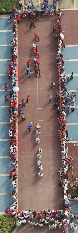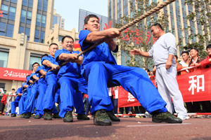 當(dāng)天,來自興業(yè)集團(tuán)各下屬單位的8支代表隊(duì)476名運(yùn)動(dòng)員精神飽滿地參加了“團(tuán)體跳繩”、“開火車”、“協(xié)作運(yùn)球接力”、“車輪滾滾”、“滾雪球”、“拔河”等團(tuán)體項(xiàng)目的比賽,整個(gè)現(xiàn)場氣氛熱烈,充滿激情,充分展示了“務(wù)實(shí)、創(chuàng)新、拼搏、進(jìn)取、奉獻(xiàn)”的興業(yè)精神和活力、和諧的企業(yè)風(fēng)采。另外,興業(yè)社區(qū)中老年文體活動(dòng)俱樂部在開幕式上進(jìn)行了太極拳和健身操表演。精彩的開幕式表演和緊張激烈的比賽吸引了眾多市民駐足觀看。