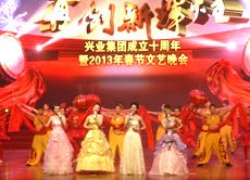 蛟龍昂首高歌去,金蛇迎春送福來(lái),闊步奔騰開勝景,春風(fēng)浩蕩展宏圖。1月19日晚,“再創(chuàng)新輝煌”日照興業(yè)集團(tuán)成立十周年暨2013年春節(jié)文藝晚會(huì)在日照市會(huì)展中心盛裝上演。央視著名主持人尼格買提擔(dān)當(dāng)主持嘉賓,李玉剛、任靜、付笛生、王二妮、楊丞剛等明星聯(lián)袂助陣。我集團(tuán)領(lǐng)導(dǎo)班子和來(lái)自興業(yè)各條戰(zhàn)線上的職工代表1600余人歡聚一堂,載歌載舞,共享勝利的喜悅,歡慶新春佳節(jié)的到來(lái)。日照市金融界各大銀行行長(zhǎng)、新聞媒體、業(yè)務(wù)合作伙伴的領(lǐng)導(dǎo)和嘉賓應(yīng)邀觀賞了晚會(huì)。