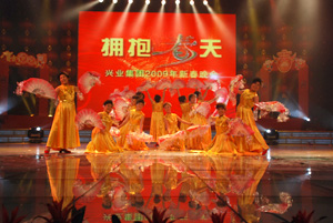 張開堅(jiān)定的臂膀 擁抱希望的春天 “擁抱春天”興業(yè)集團(tuán)2009年春節(jié)聯(lián)歡晚會隆重舉行 鼠去牛來辭舊歲,龍飛鳳舞慶新春。1月17日,“擁抱春天”興業(yè)集團(tuán)2009年春節(jié)聯(lián)歡晚會在日照廣播電視演播大廳隆重舉行。丁杰、王建國、韓金軍、趙文強(qiáng)、劉永漢、申作華、李春賢等領(lǐng)導(dǎo)和集團(tuán)工作標(biāo)兵、先進(jìn)工作者,及各分公司的職工代表500多人歡聚一堂,一同興致勃勃地觀看了演出。 整臺晚會在歡快、精彩、喜慶的歌伴舞《歡天喜地》中拉開了帷幕。旋律優(yōu)美的歌舞器樂表演《日照,我眷戀的故鄉(xiāng)》,深情的表達(dá)了興業(yè)人對家鄉(xiāng)的熱愛;公司王鵬的獨(dú)唱《今天》唱出現(xiàn)代人對生活的執(zhí)著追求;興業(yè)房產(chǎn)的姑娘們自編自演的舞蹈《趕!罚┟钗┬さ谋憩F(xiàn)出了海邊人的趕海樂趣。小品《牛老板買房》來源于生活、取材于銷售工作,通過小品中的牛老板對銷售人員的現(xiàn)場考驗(yàn),進(jìn)而義無反顧的買興業(yè)房子這一主題,再現(xiàn)了興業(yè)房產(chǎn)旨在用服務(wù)贏得客戶,用真誠打動業(yè)主,堅(jiān)持走品牌戰(zhàn)略的路線,小品演員逼真到位的表演逗的臺下的觀眾捧腹大笑;興業(yè)房產(chǎn)副總許愛華和興業(yè)世紀(jì)嘉園社區(qū)阿姨們帶來的太極拳和劍術(shù)表演,剛?cè)岵?jì),相得益彰,展示了人們對中華武術(shù)的傳承與喜愛;激昂高亢的男聲獨(dú)唱《愛不愛我》唱出了年輕人的激情,唱出了年輕人的執(zhí)著;小品《以愛的名義》講述了一名興業(yè)員工和他的妻子在汶川大地震發(fā)生后,無私捐款的感人故事,展示了興業(yè)員工崇高的精神境界;情到深處,臺下的觀眾無不為之潸然淚下。詩歌朗誦《讓抗震精神永遠(yuǎn)激勵我們向前》將整臺晚會推向了高潮,通篇道出了興業(yè)人在汶川發(fā)生震災(zāi)后,積極捐款、捐物、獻(xiàn)血、生產(chǎn)救災(zāi)板房、赴川援建、幫助災(zāi)區(qū)同胞重建家園的感人場景,表現(xiàn)了興業(yè)人在國家災(zāi)難面前一馬當(dāng)先、甘于奉獻(xiàn)的高度社會責(zé)任感。京韻大鼓《重整河山待后生》表達(dá)了對災(zāi)區(qū)的美好祝愿;歌曲《中國龍》表達(dá)了興業(yè)人的愛國情懷;來自興業(yè)汽配的裴玉用近乎專業(yè)的唱功為大家演唱的歌曲《天路》和青島永杰公司表演的《新疆歌曲串燒》給我們帶來了別開生面的異域風(fēng)情;伴著夢幻般音樂的魔術(shù)《畫中人》,其換衣玄機(jī)著實(shí)讓大家猜摸了一番;歌舞表演《走進(jìn)新時代》歌頌了中國改革開放三十年的蓬勃發(fā)展,表達(dá)了興業(yè)人對祖國的無限熱愛;本場晚會的主題歌,原創(chuàng)歌曲《擁抱春天》充分展示了興業(yè)人團(tuán)結(jié)協(xié)作、奮勇拼搏、共度寒冬、擁抱春天的堅(jiān)定信心和美好祝愿,將晚會再次推向高潮。晚會最后在《明天會更好》的優(yōu)美旋律和對新年美好的祝福聲中落下了帷幕。 本場晚會全部是由興業(yè)集團(tuán)員工自編、自演、自導(dǎo),節(jié)目內(nèi)容健康向上,突出原創(chuàng),充分體現(xiàn)了興業(yè)集團(tuán)優(yōu)秀的企業(yè)文化和興業(yè)員工良好的精神風(fēng)貌。 整臺晚會歷時近兩個小時,節(jié)目精彩紛呈,觀眾喜聞樂見。 據(jù)了解,“擁抱春天”興業(yè)集團(tuán)2009年春節(jié)聯(lián)歡晚會將于春節(jié)期間在日照電視臺各頻道播出,將為全市人民奉獻(xiàn)一道精彩的文藝大餐。 |