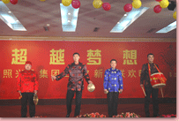 瑞犬凱歌辭舊歲,花豬起舞賀新年。2月6日晚,凱萊大酒店會(huì)展中心 內(nèi)歌聲悠揚(yáng)、掌聲陣陣,“2007年日照興業(yè)集團(tuán)迎春聯(lián)歡文藝晚會(huì)”正在這里舉行。集團(tuán)領(lǐng)導(dǎo)丁杰、王建國(guó)、韓金軍、趙文強(qiáng)、申作華、李麗萱、李春賢以及集團(tuán)機(jī)關(guān)、各分公司的標(biāo)兵、先進(jìn)工作者、職工代表近400人一起興致勃勃地觀看了演出。全國(guó)政協(xié)委員、民革中央畫院院長(zhǎng)、國(guó)畫大師宋雨桂應(yīng)邀出席了晚會(huì)。市內(nèi)各大銀行、日照日?qǐng)?bào)、日照電視臺(tái)等單位的領(lǐng)導(dǎo)、記者、工作人員也觀看演出,歡聚一堂,共慶新年。
